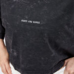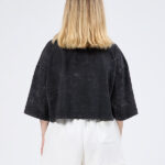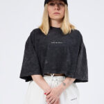 Siyah Kısa Kollu Yıkamalı Crop Tişört